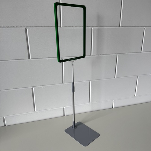Standaard A4 groen verstelbare kunststof buis en voet metaal - trapeziumvormig - buishouder in kleur groen. Verstelbaar/ uitschuifbaar van 32 tot 62 cm. Kleur van deze buis is wit/groenSpecificaties